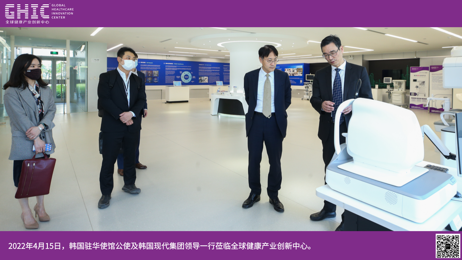 2022年4月15日,韩国驻华使馆公使及韩国现代集团领导一行莅临全球健康产业创新中心。